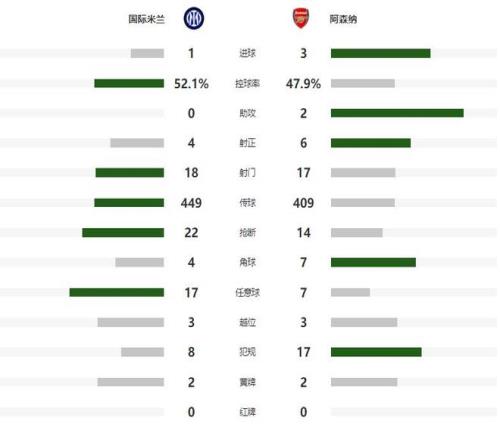 随着主裁判一声哨响,两支球队在摆开架势对攻,第2分钟客场作战的阿森纳,在梅阿查打出反击,可惜门前包抄的热苏斯没有碰到队友的传中球,错失帮助球队取得梦幻开局的机会,但8分钟之后,巴西前锋就弥补了遗憾,阿森纳前场连续传导球,禁区内的热苏斯铲射建功,阿森纳1-0领先国米。